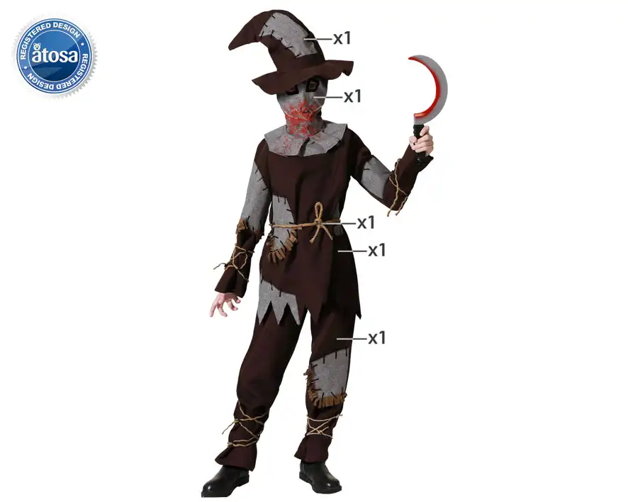 Disfraz espantapajaros infantil, 12-9, talla 10-12, 7-9, 5-6, 3-4