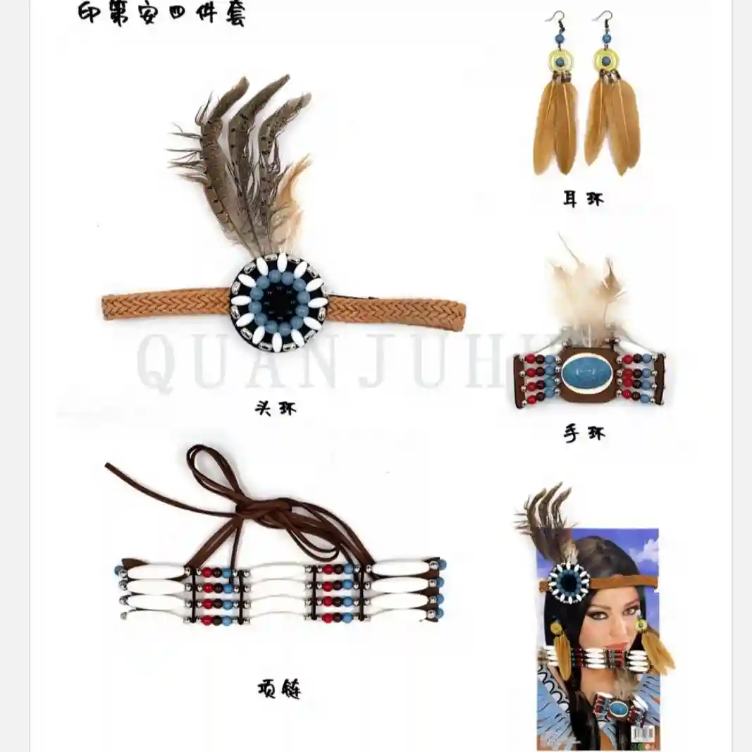 Set indio, 8-11-5, 006792, collar, pendientes, cinta para el pelo, pulsera